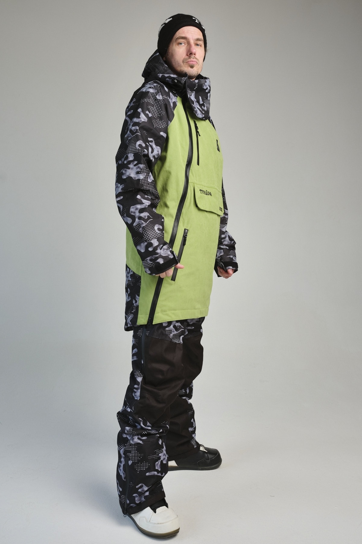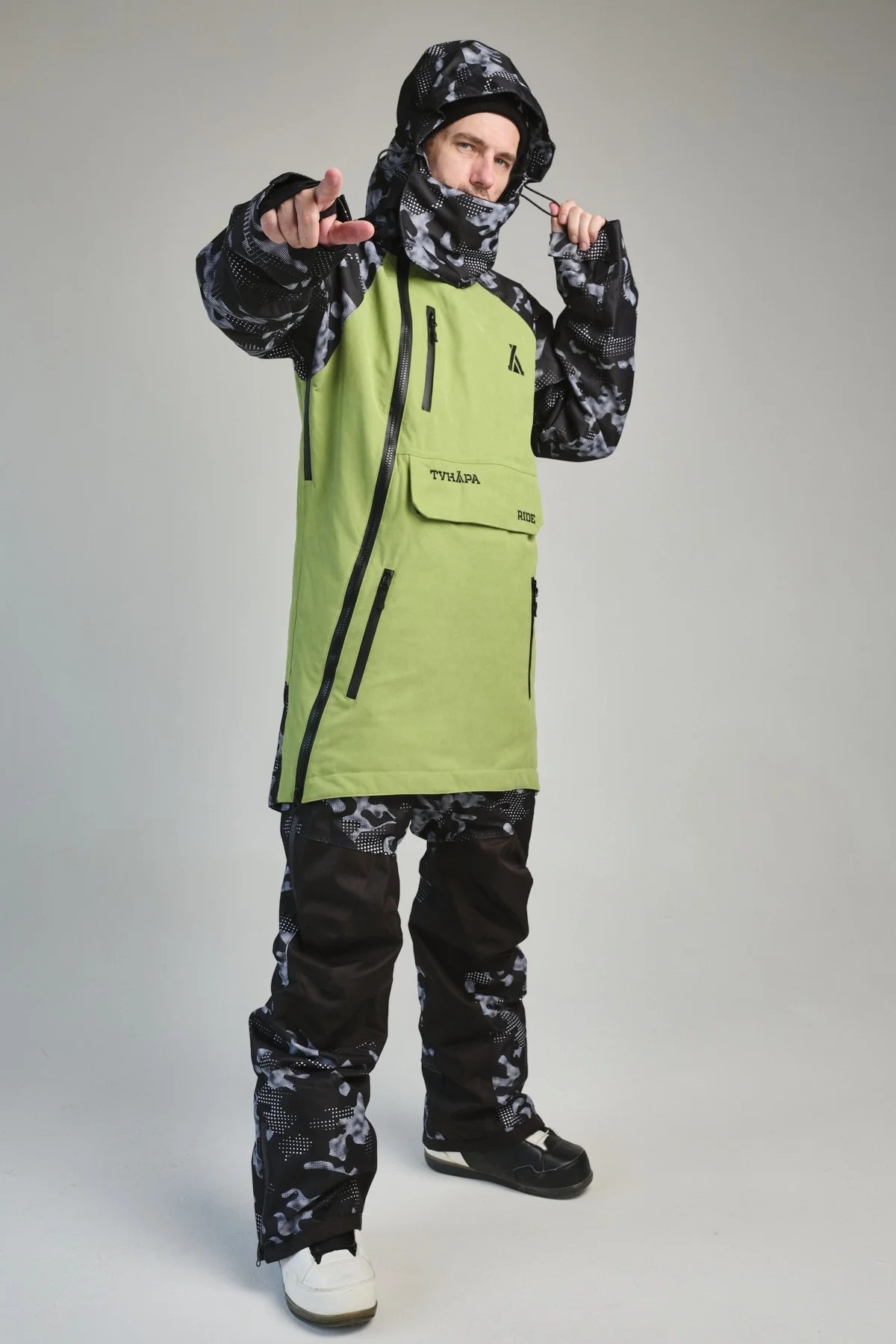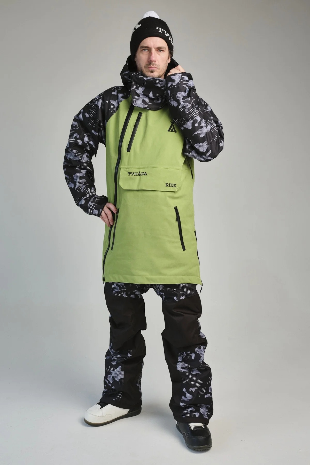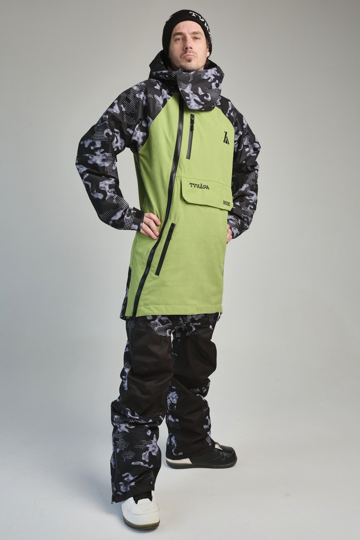 Зимний комбинезон для сноуборда ТУНДРА RIDE VI — это самая стильная модель в коллекции бренда. Он состоит из удлинённой куртки-анорака и брюк, образуя единый костюм. Просторный крой позволяет сноубордистам и ньюскулерам легко выполнять различные трюки. Комбинезон также идеально подходит для катания с кайтом на лыжах благодаря широкому клапану для крюка кайт-трапеции, скрытому под логотипом. Это отверстие не мешает использовать комбинезон и в других видах спорта.