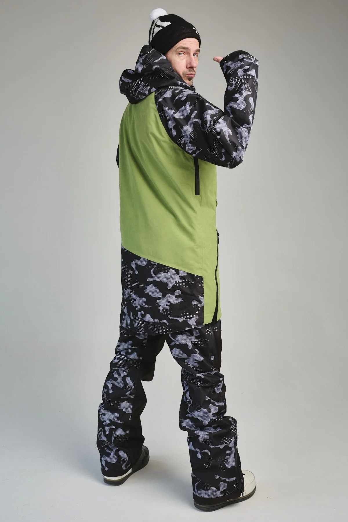 - Продуманный свободный крой, исключает разрыв по шву при широкой стойке райдера