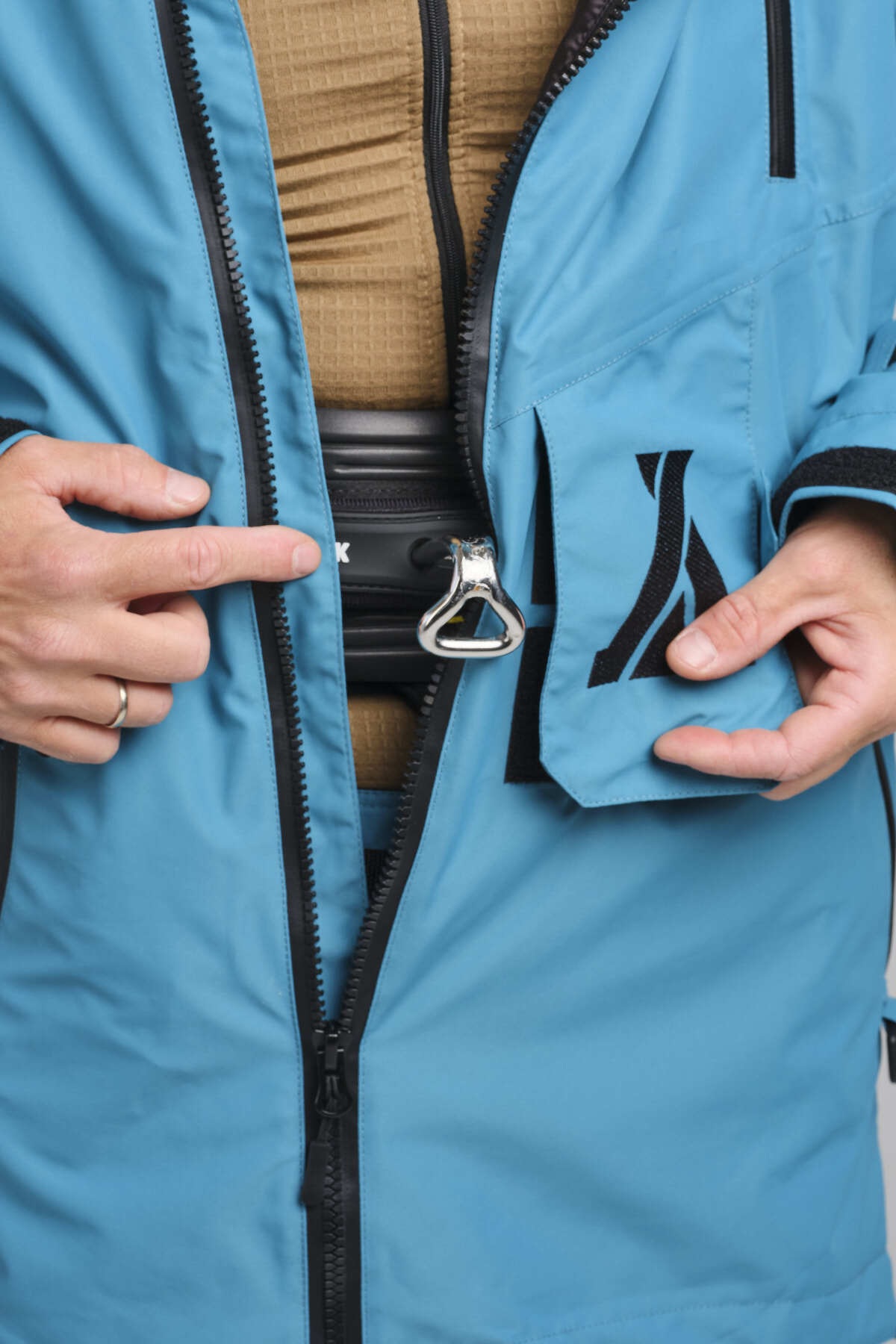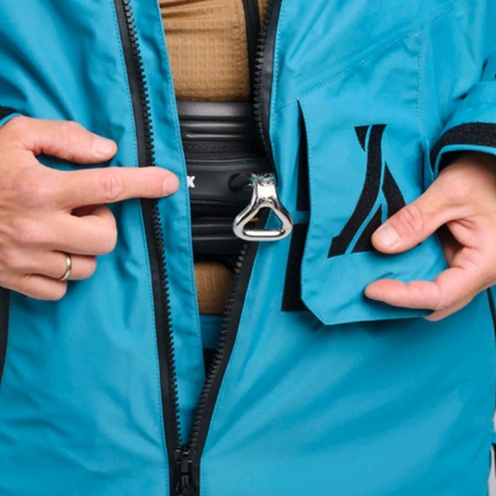 Уникальное отверстие для крюка трапеции позволяет надевать ее внутрь комбинезона, что крайне удобно при занятиях сноукайтингом и позволяет райдеру выглядеть стильно. Конструкция отверстия очень прочна за счет своей формы и кроя и даже при сильных движениях крюка в стороны оно не разрывается.
