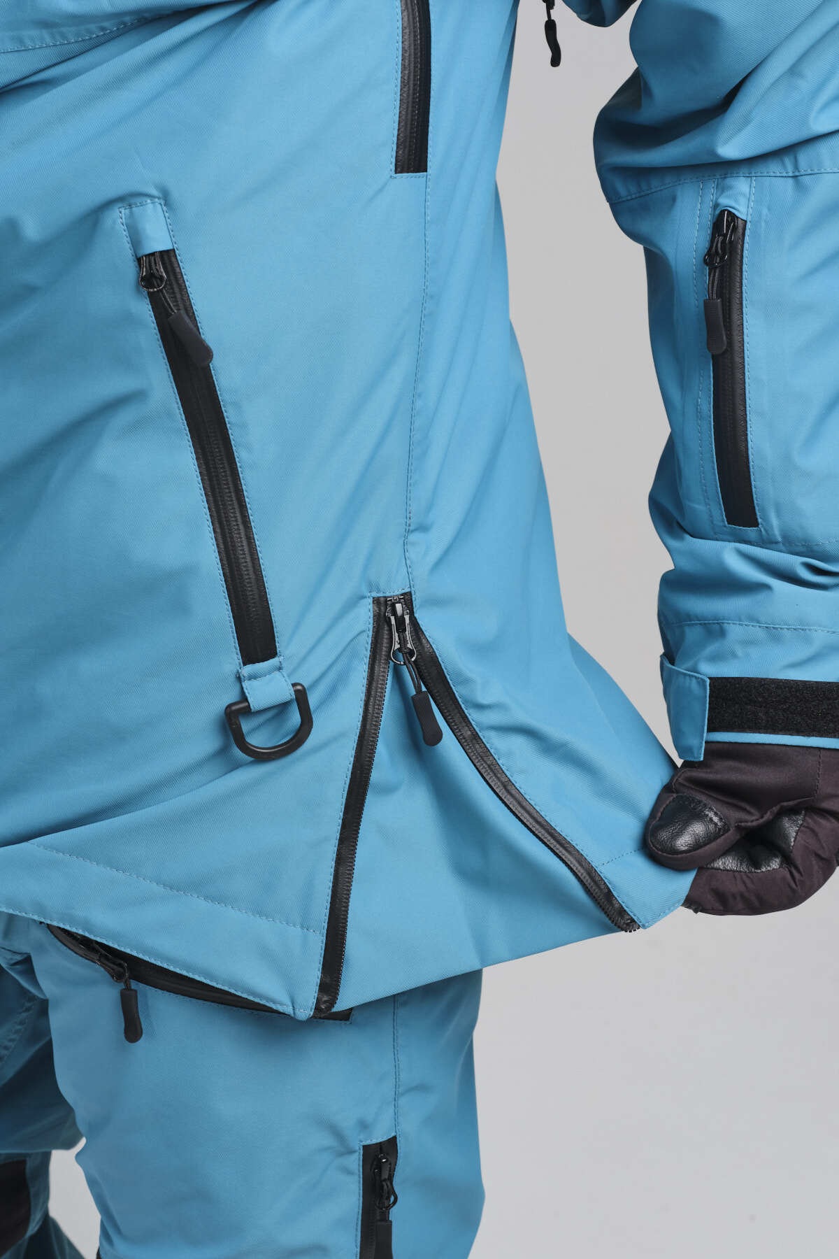 - Круговая защитная юбка от снега на молнии сохраняет литую конструкцию комбинезона