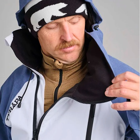 В комбинезонах используется двухкомпонентная морозостойкая дышащая мембрана Porelle (до -60°С) на основе PTFE с водонепроницаемостью 20000 мм и паропроницаемостью 30000 г/м2/24ч.