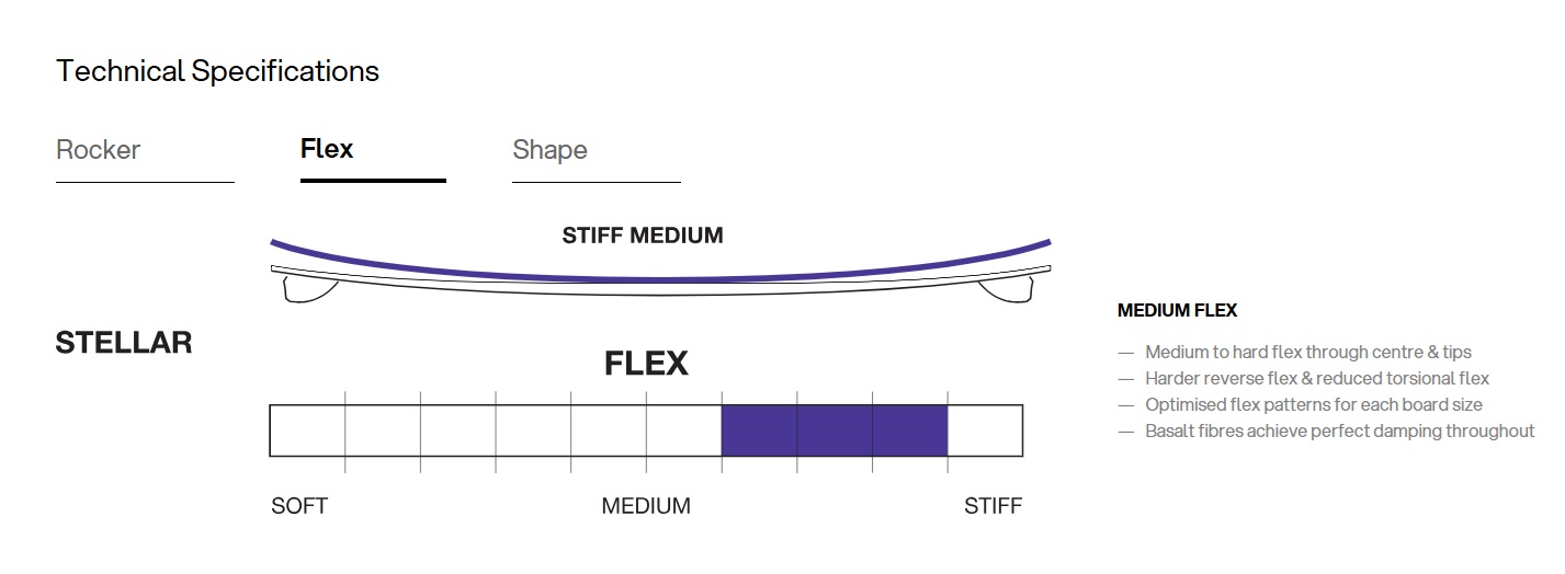 Это настоящий Big Air: высокотехнологичная доска Stellar раскрывает взрывную мощность, которая поднимет вас на невероятную высоту. Модель обеспечивает исключительное сцепление, точный контроль и стабильные приземления при выполнении любых трюков.