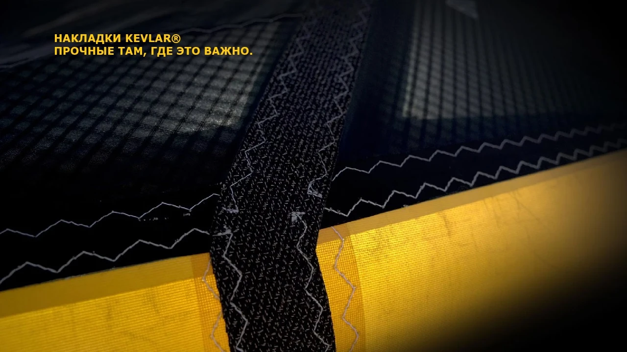- Усиления из кевлара® — дополнительная защита и жёсткость там, где это наиболее важно.