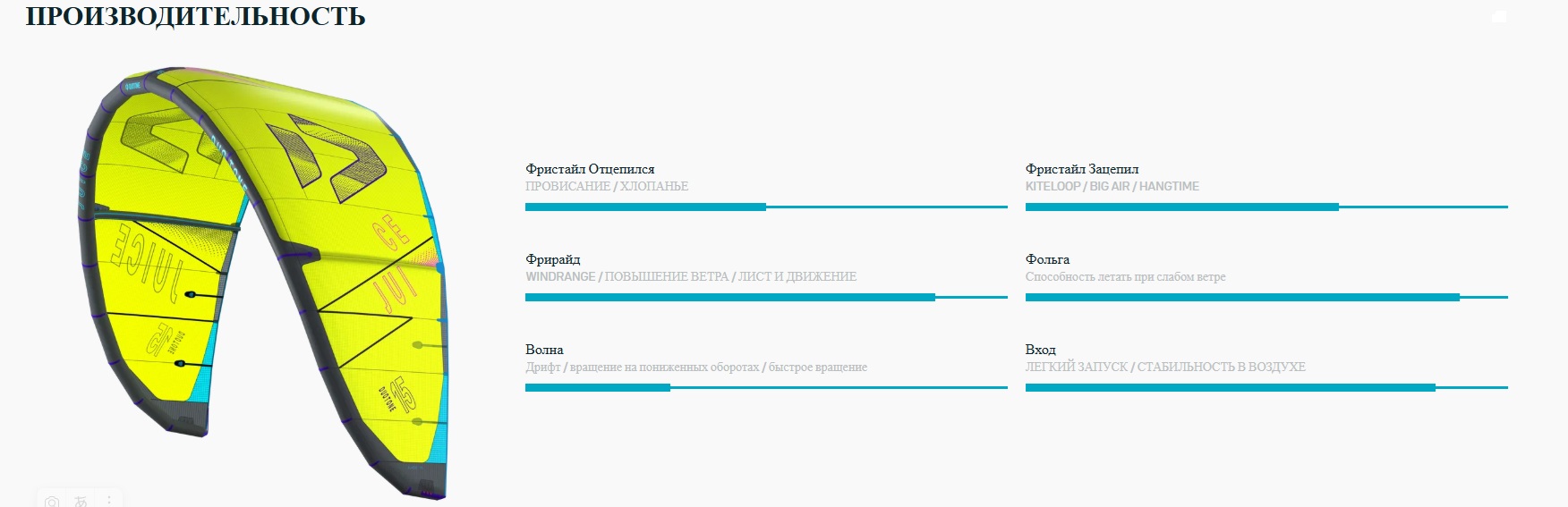 - Универсальность для фойла и твин-типа: выполняет бусты, петли и карвинги при слабом ветре без ущерба для качества.