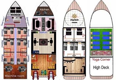 Трюм: 2 трехместные каюты и 1 каюта с большой кроватью